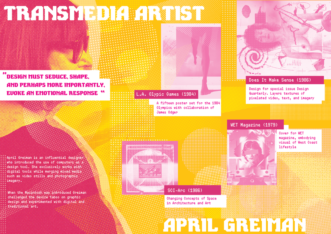 A made up exhibit brochure design for graphic designer April Greiman.